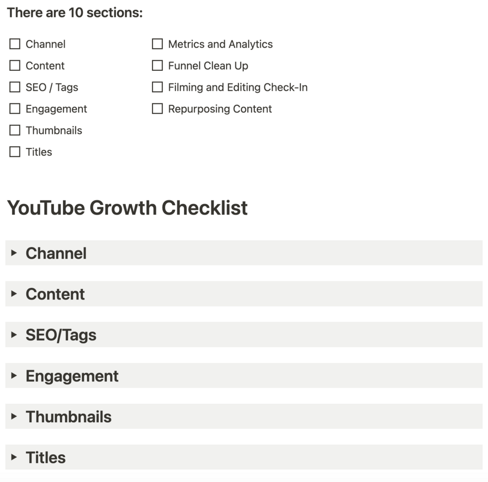 You'll get a Notion checklist you can add to your own workspace, or use as a standalone page to guide your YouTube channel creation or tune-up in 2025.